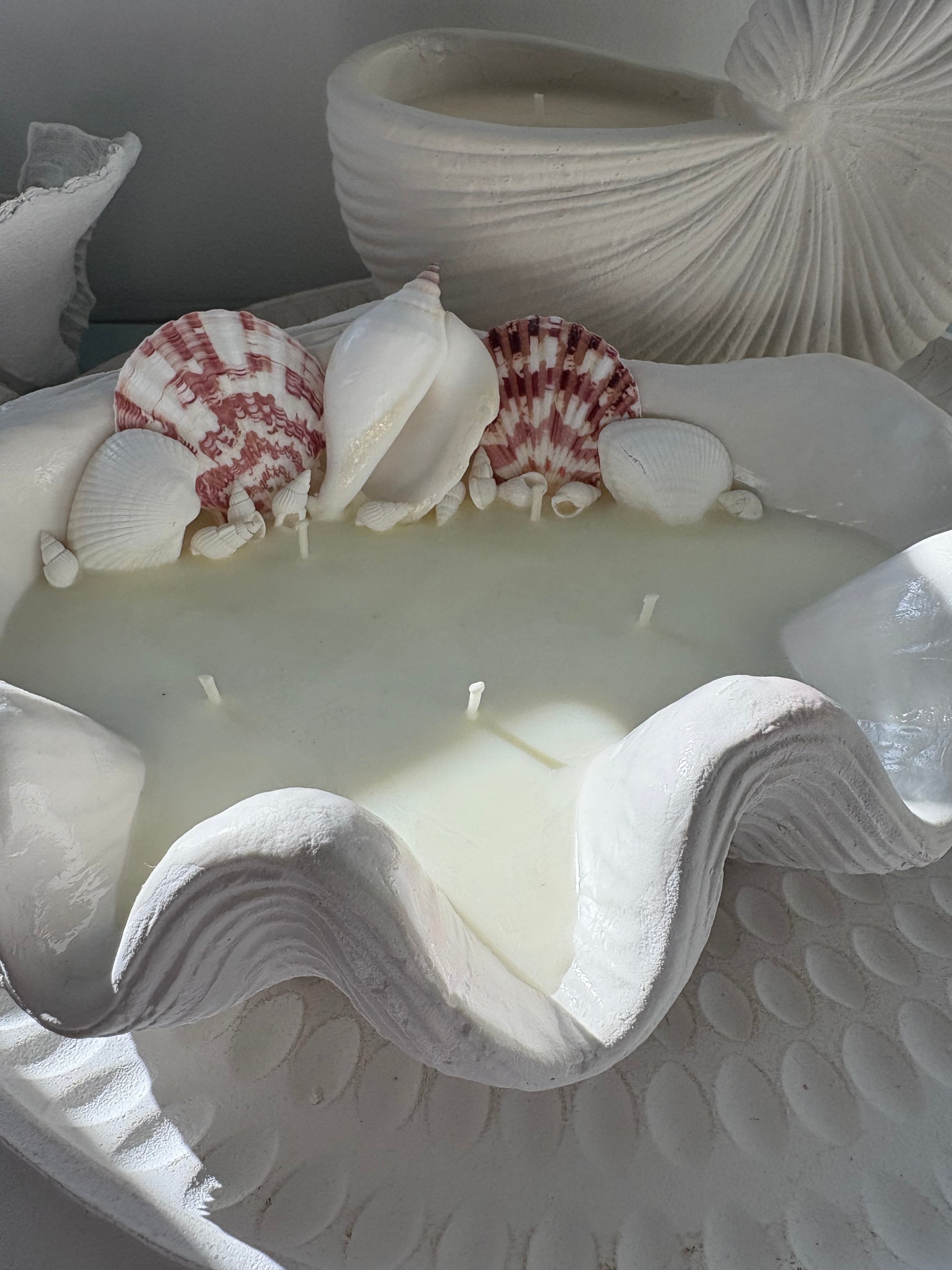 Bring coastal calm into your home with this Large Clamshell Soy Candle, a beautifully handcrafted piece that captures the soft, organic form of a seashell. Poured with natural soy wax into a matte, textured clamshell vessel, this candle evokes the raw beauty of the sea in a refined, understated way.