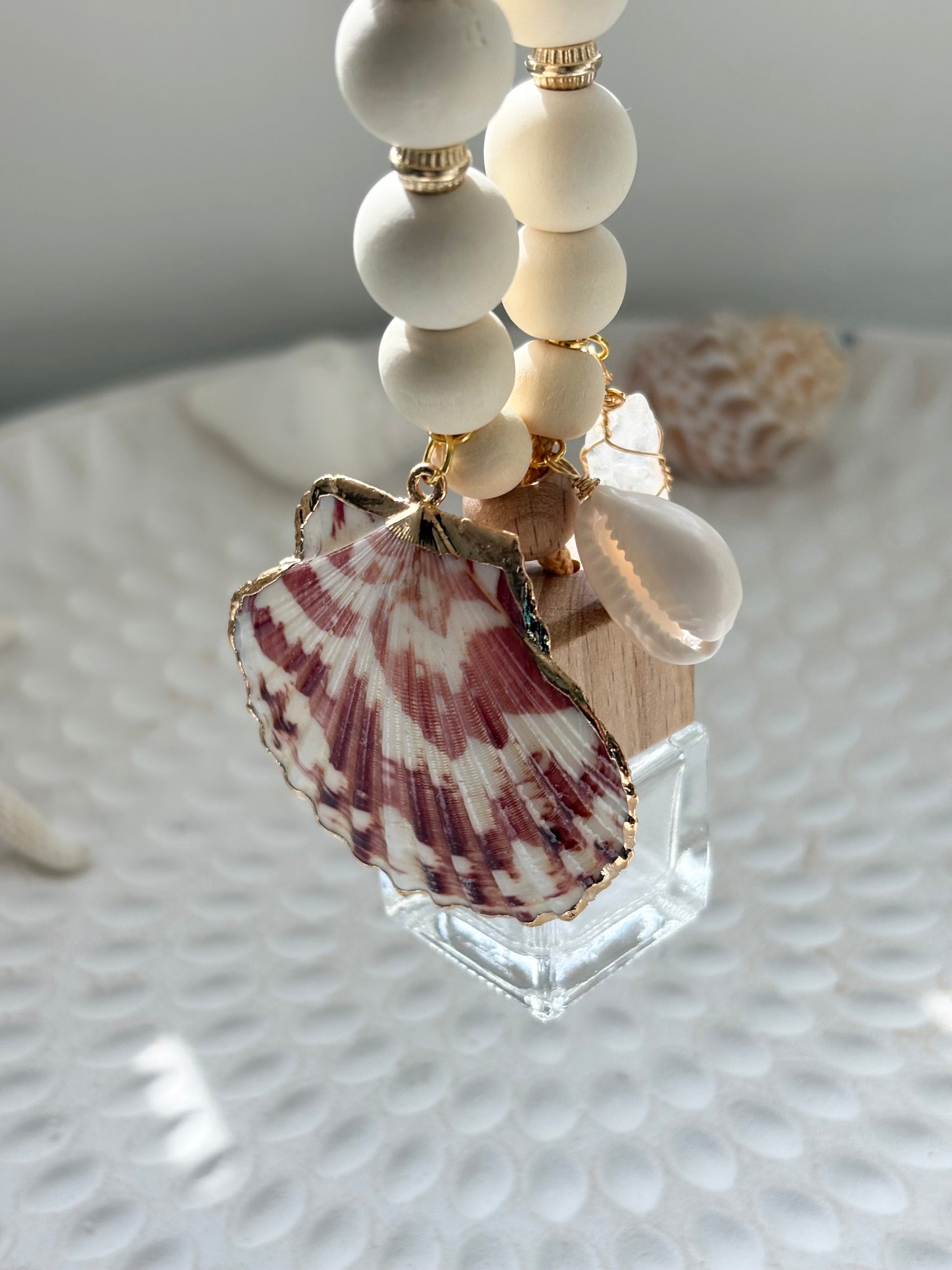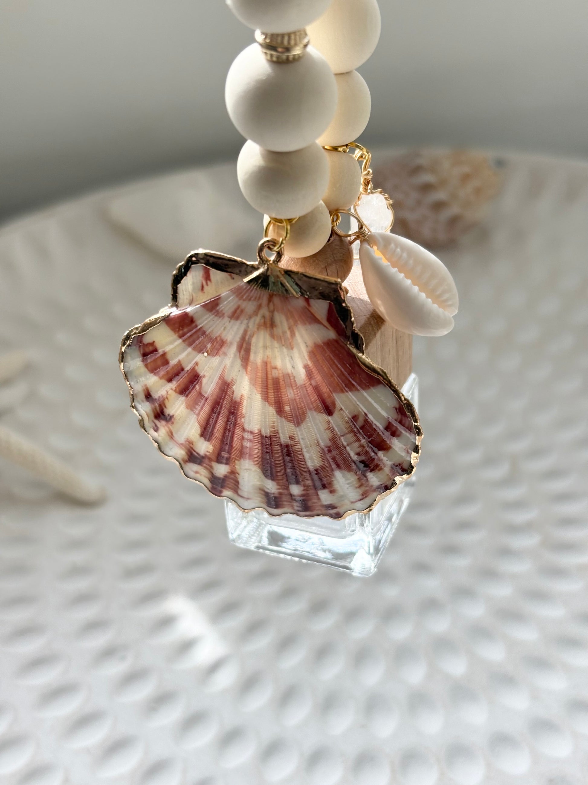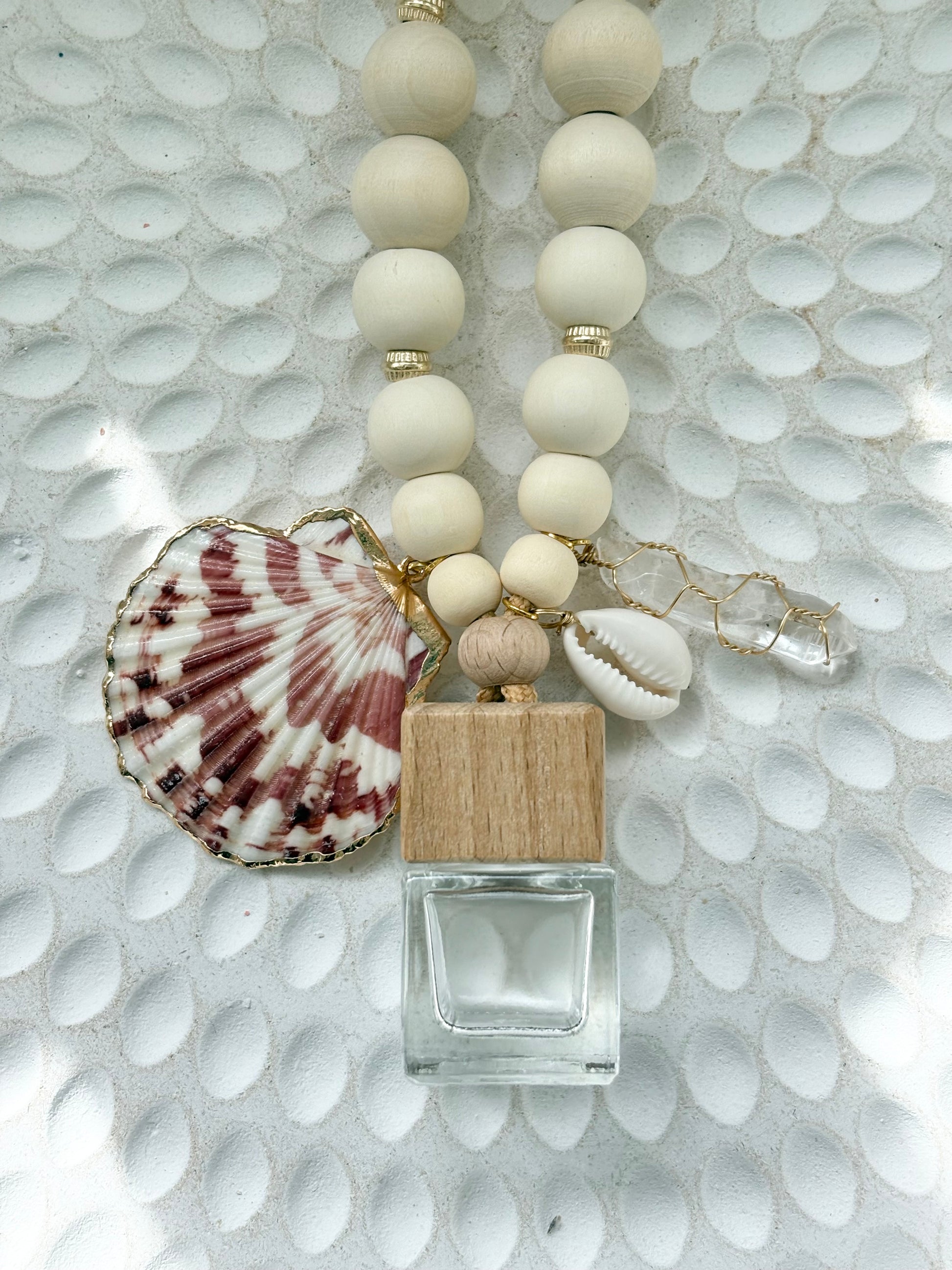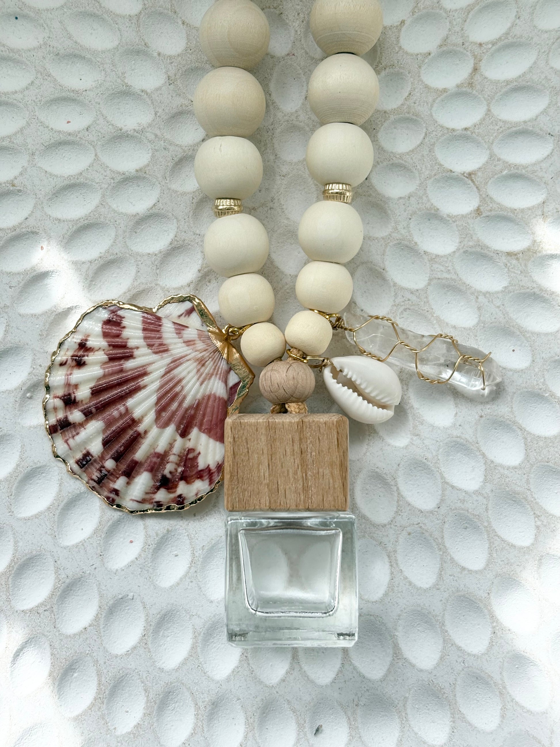 Bring the laid-back luxury of the coast to your daily drive with our Shellbound Car Diffuser. Hand-assembled with natural wooden beads, coastal shell accents, and a sleek glass diffuser bottle topped with raw timber, this piece is more than a car freshener, it’s a vibe.